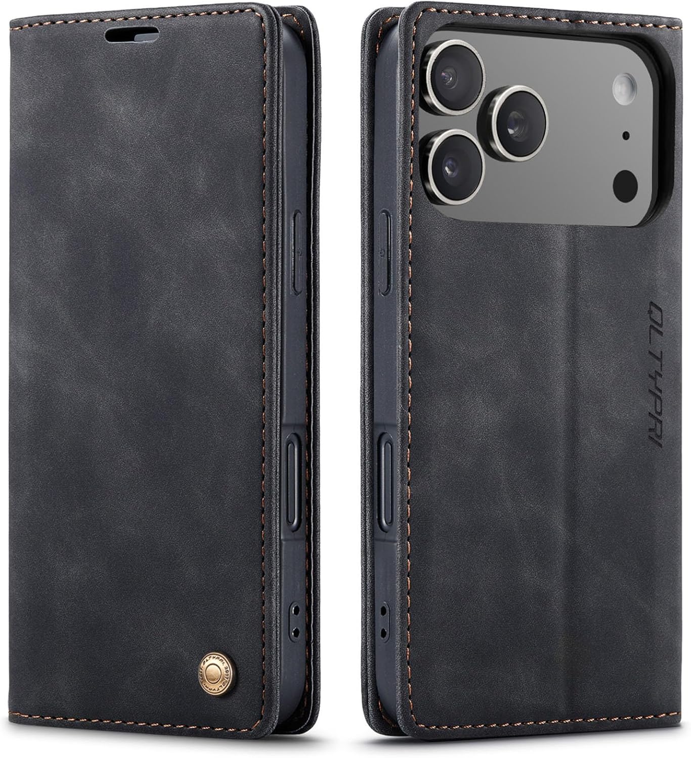 QLTYPRI for iPhone 17 Pro Max Case Wallet with Card Holder, Vintage PU Leather Kickstand Magnetic Closure Shockproof Folio Book Cover Case for iPhone 17 Pro Max - Black