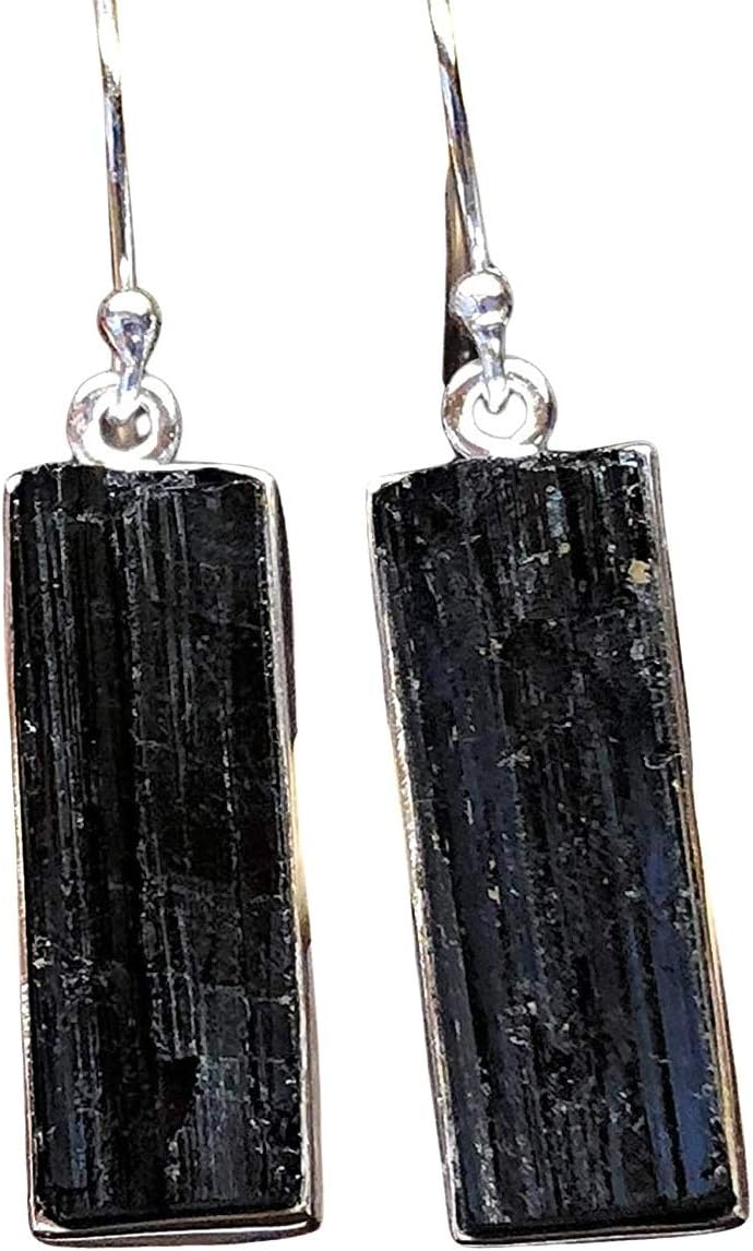 Genuine Black Tourmaline 925 Sterling Silver Earrings 40mm