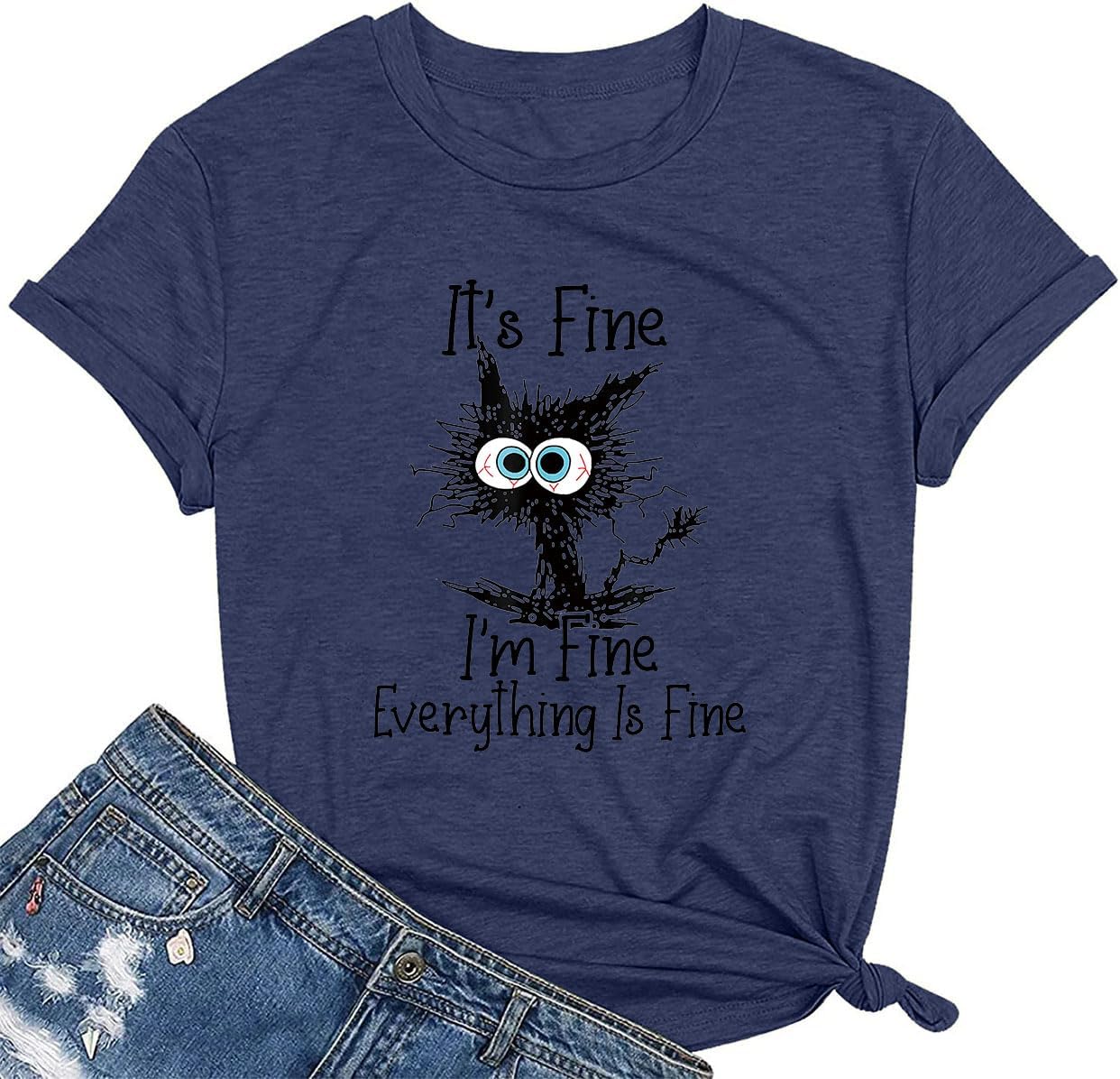 Im Fine Everythings is Fine Shirts for Women Funny Cat Graphic Shirts Cute Womens T Shirts Tee Tops