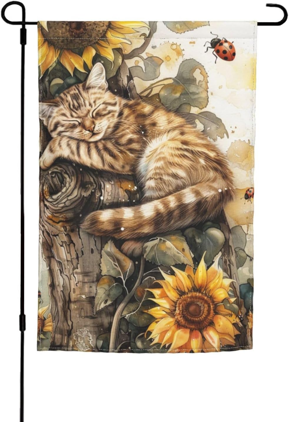 - Flag Size: This Cute Cat Sunflower Garden Flag Is The Small, Arden Size Measures 12" X 18", Fits Most Standard Garden Flag Poles (Package Includes Garden Flag Only, Flag Stand Not Included)