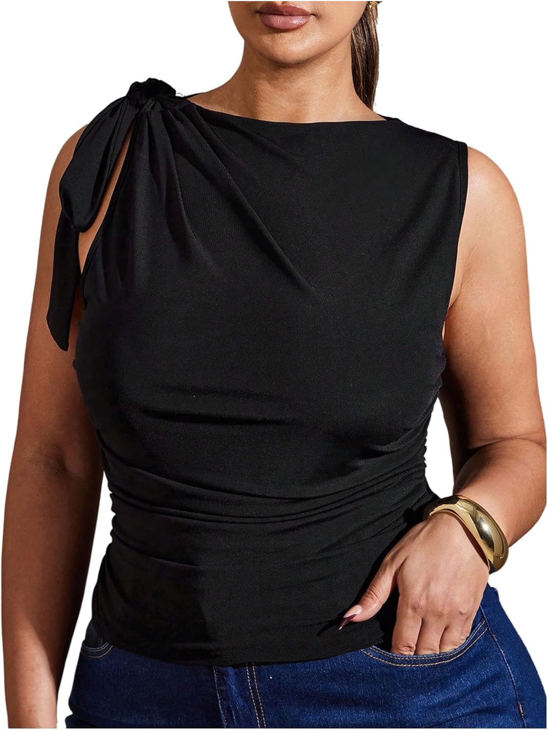 Floerns Women's Plus Size Summer Tank Tops Tie Shoulder Ruched Dressy Casual Vest