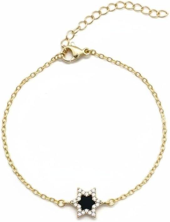 14K Gold Plated Star Of David Women Bracelet Onyx Style Stone – Jewish Symbol Pendant from Israel – Elegant Hebrew With Cubic Zirconia Dainty Religious Jewish Jewelry Gift