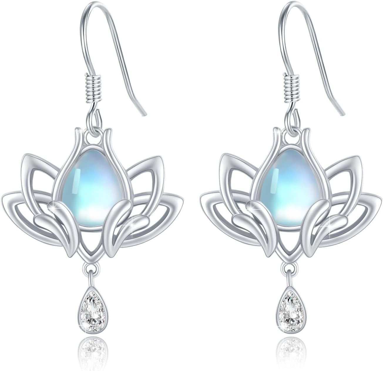 Lotus Leverback Earrings for Women 925 Sterling Silver Moonstone Lotus Hypoallergenic Dangle Earring Dainty Christmas Jewelry Gifts