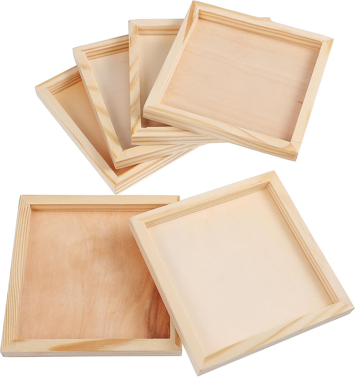 NOLITOY 4.7 Inch Wooden Trays, 6 Pcs Square Serving Boxes, Unfinished Small Wood Serving Tray for Crafts, Serving, and Home Decor