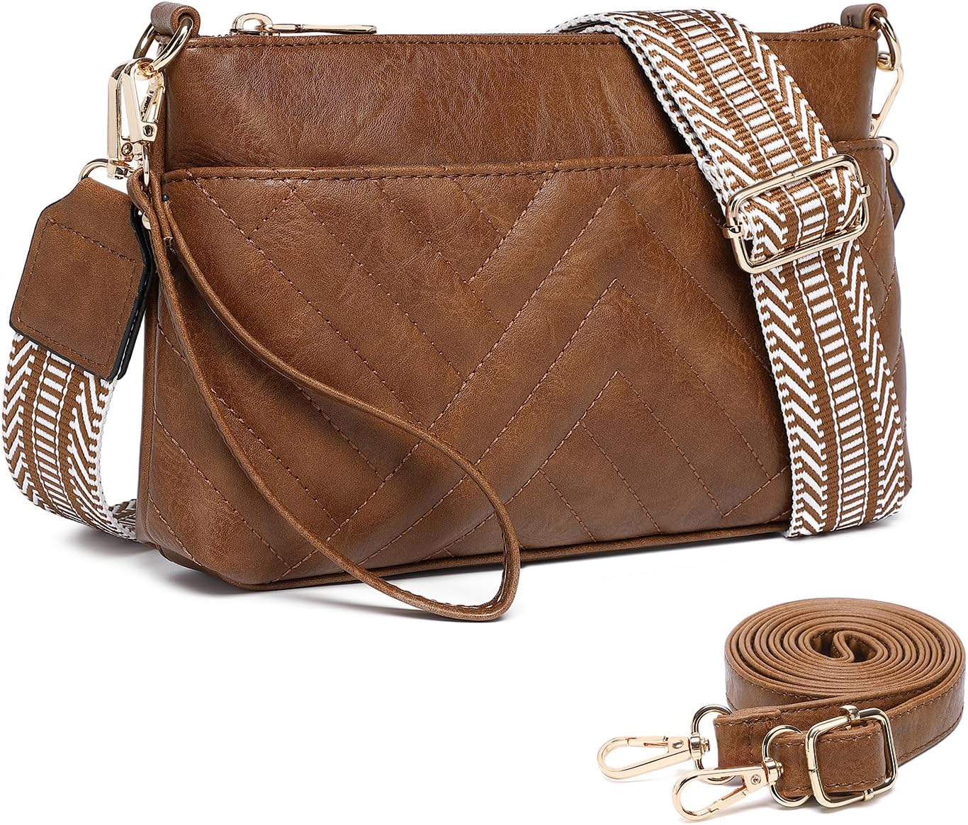 BAVERGE Small Crossbody Bags for Women Leather Wristlet Clutch Mini Purse Wallet with Card Slots 2 Adjustable Shoulder Straps