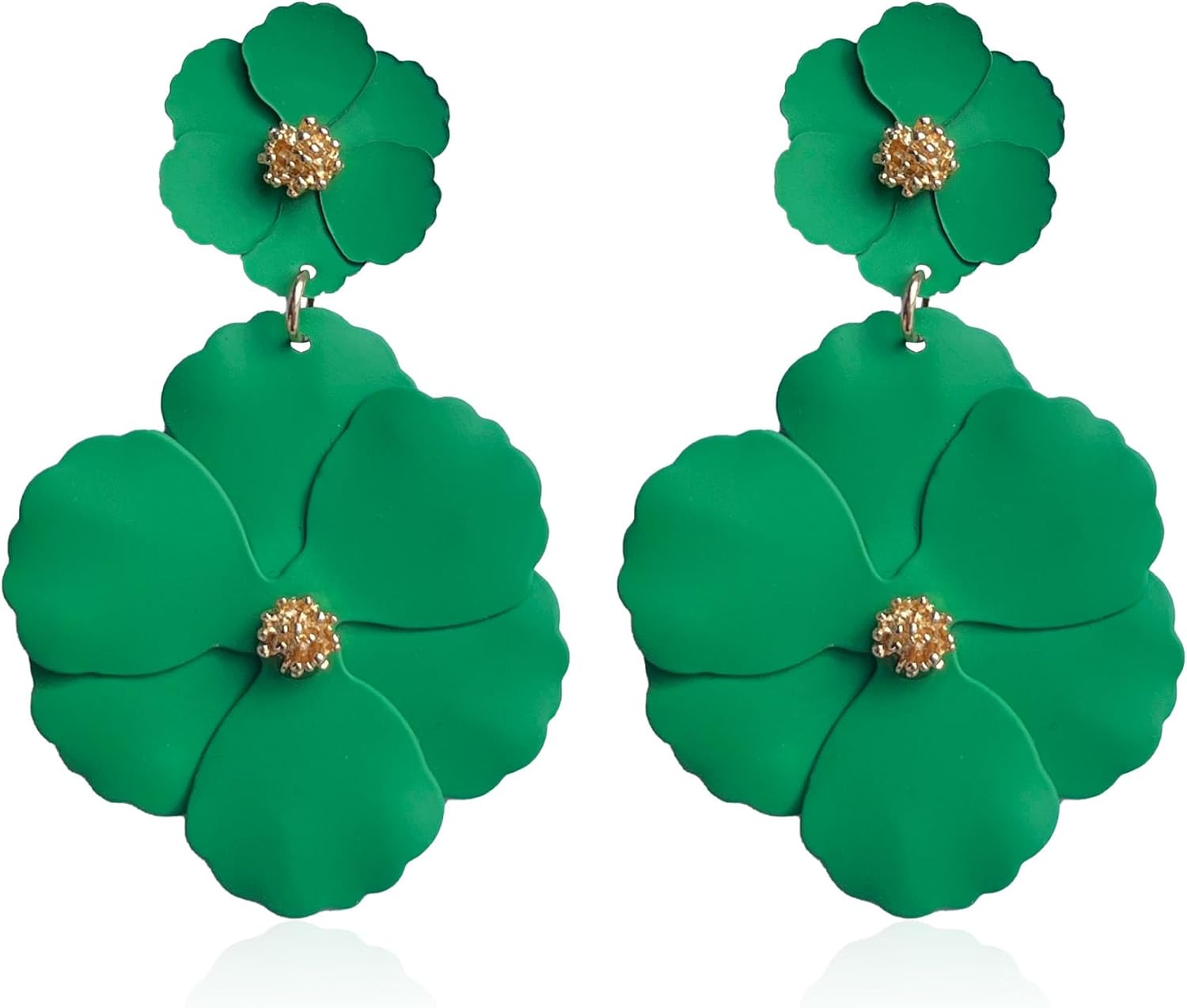 White Summer Flower Floral Dangle Earrings Boho 2 Layered Floral Petal Drop Statement Stud Earring for Women Jewelry