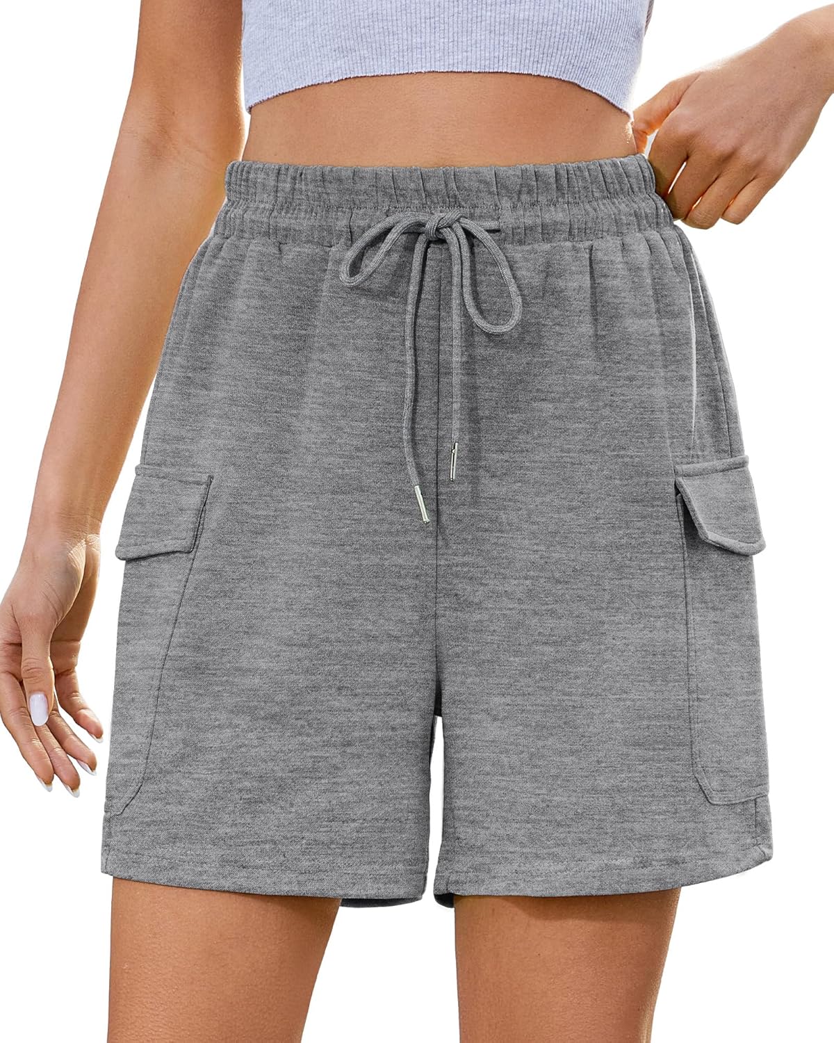 luvamia Sweat Shorts for Women High Wasited Baggy Cargo Pull On Elastic Waist Sport Athletic Summer Lounge Comfy Shorts