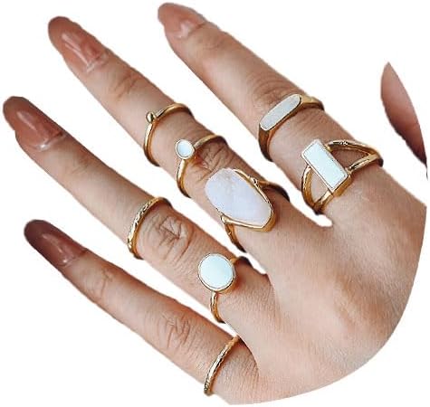FUTIMELY Vintage Knuckle Rings Set for Women Stackable Opal Midi Ring Pack Adjustable Boho Joint Finger Rings