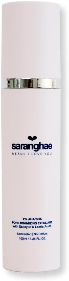 Love Saranghae AHA BHA Pore Refining Exfoliant – 2% Salicylic & Lactic Acid Liquid Toner – Smooth & Clarify Skin – Fragrance-Free, Non-Irritating, 4 fl oz