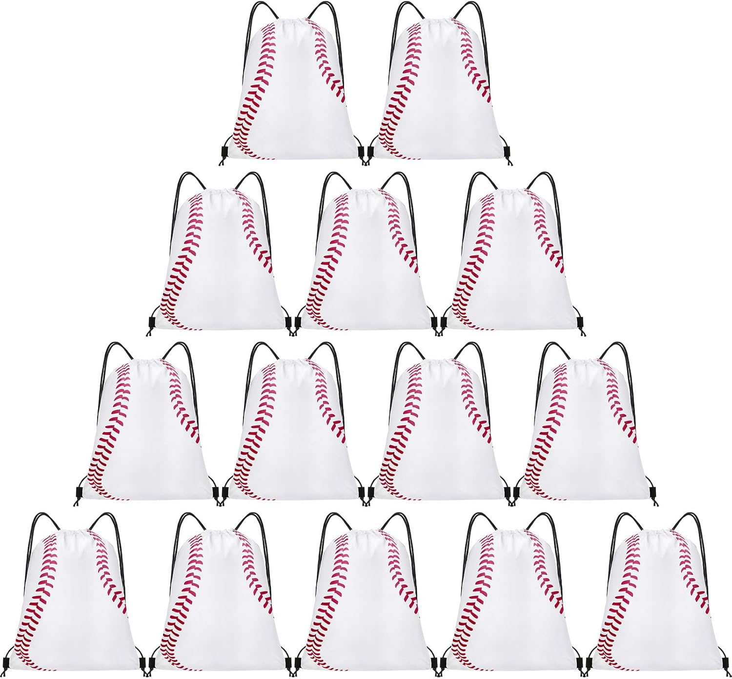 14 Pcs Drawstring Bags Softball Baseball Basketball Football Goodie Favor Bags Cinch Bag Sackpack for Sports Teams (Baseball)