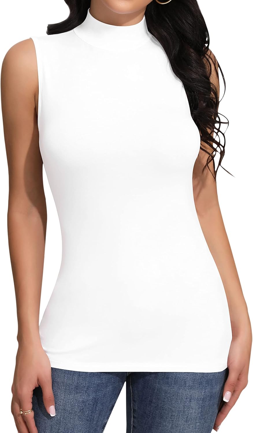 SHEIUGU Women’s Long Sleeve Sleeveless Mock Turtle Neck Tops Basic Stretchy Fitted Underwear Layer Tee Shirts