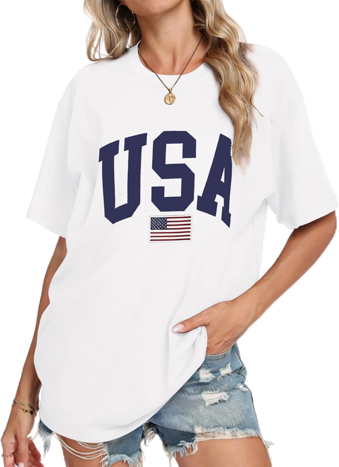 KESIHAN Womens USA T Shirt American Flag Patriotic Shirts Womens Graphic T Shirts Round Neck Short Sleeve Tops