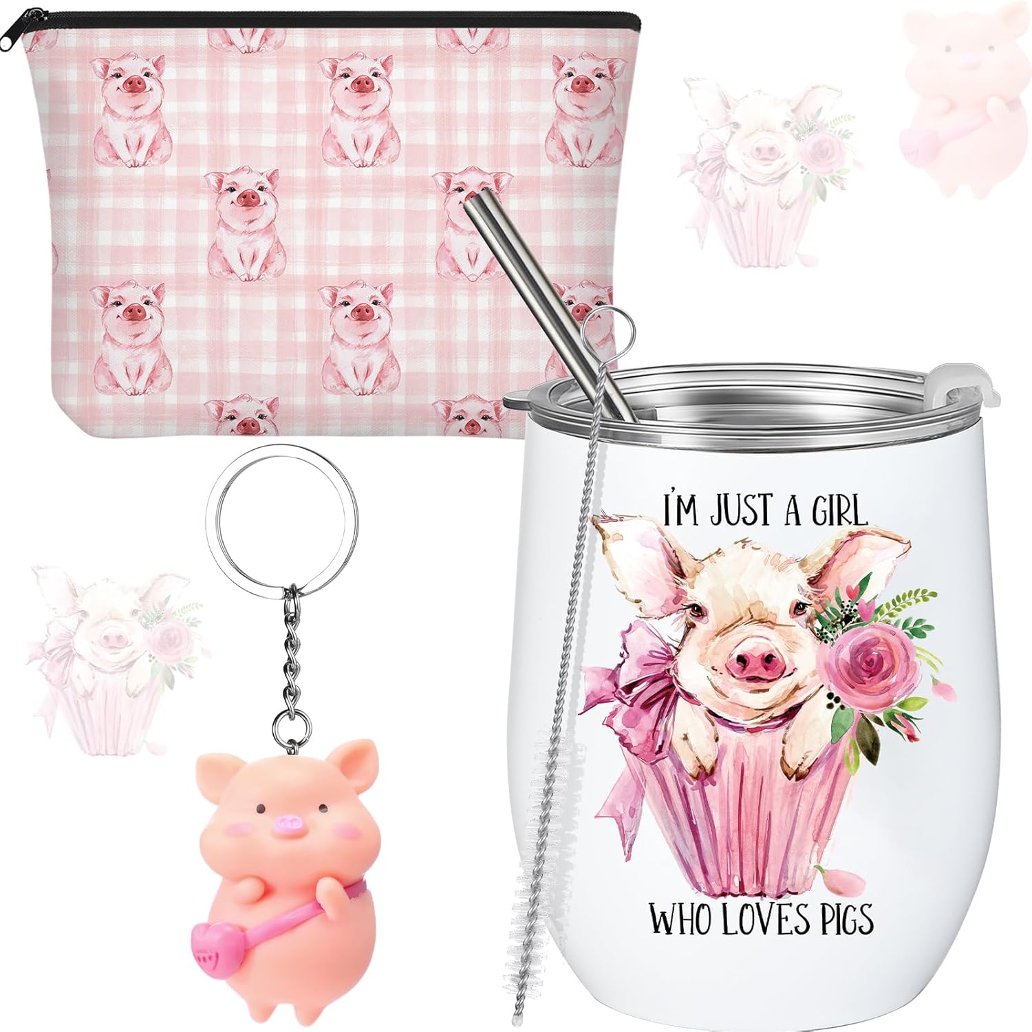 - Novelty Design: 12 oz pig stainless steel wine tumbler with funny message, [I'm Just a girl], [Who Loves pig], printed on the front is a suitable gift idea for any occasion; Christmas pig cosmetic bag and a Christmas cute cow keychain are useful gifts for a pig lover; Novelty design can be applied as a good wedding gift, Christmas, birthday, festivals, party or celebrations