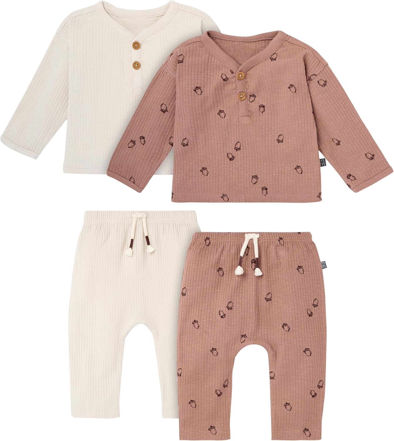 Modern Moments by Gerber Unisex Baby 4-pack Henley Top and Pants Set