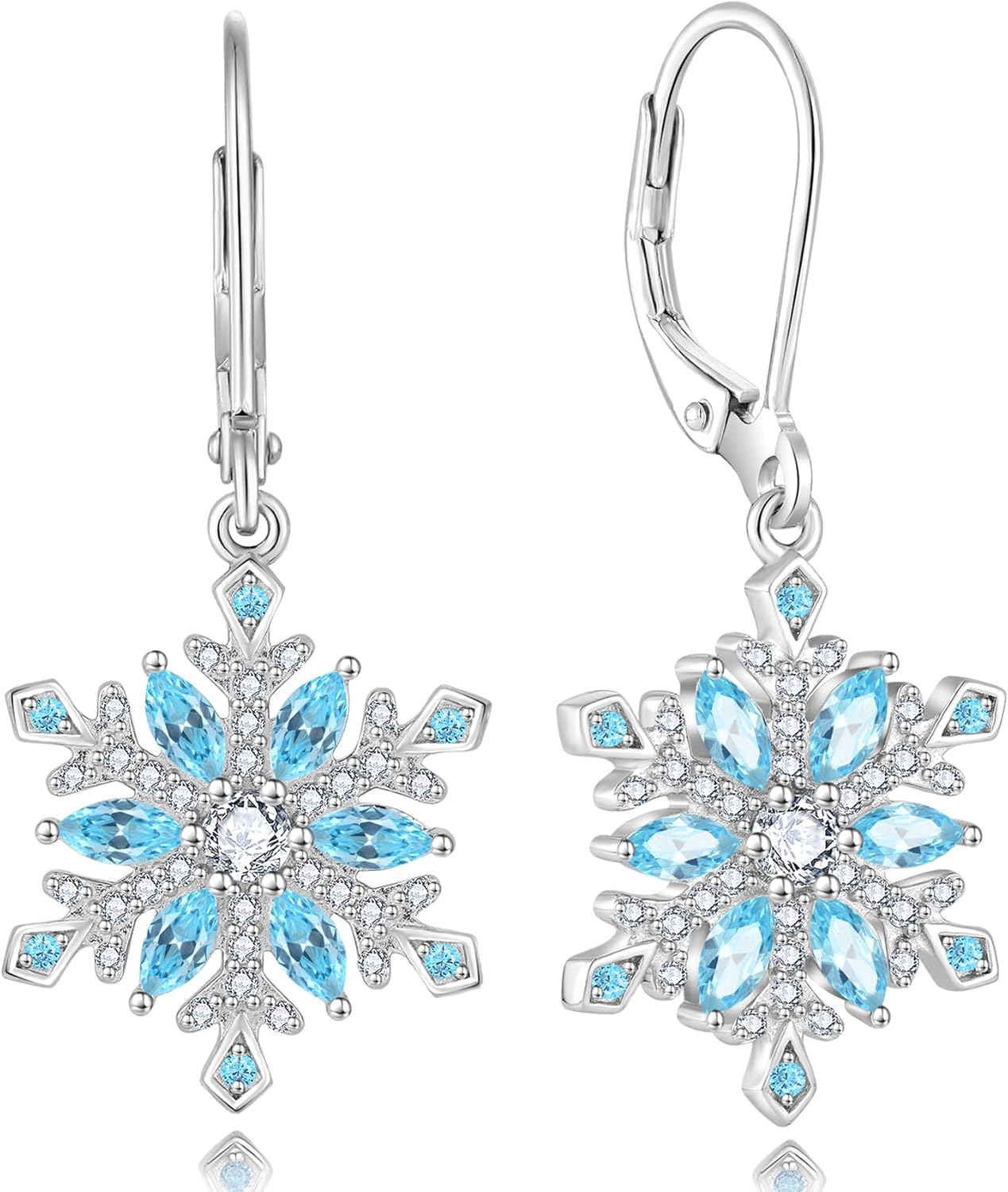 Snowflake Christmas Earrings for Women 925 Sterling Silver Frozen Leverback Winter Dangle Drop Earring Christmas Jewelry Gifts