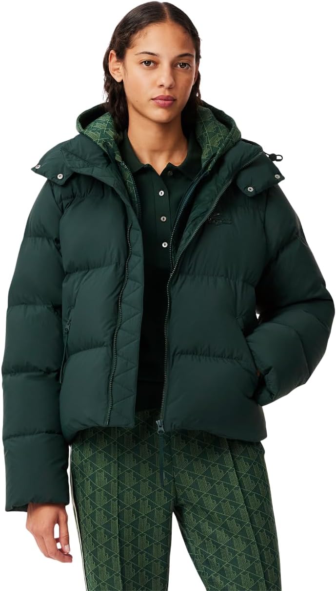 Lacoste womens Padded Down Logo Jacket With Hood