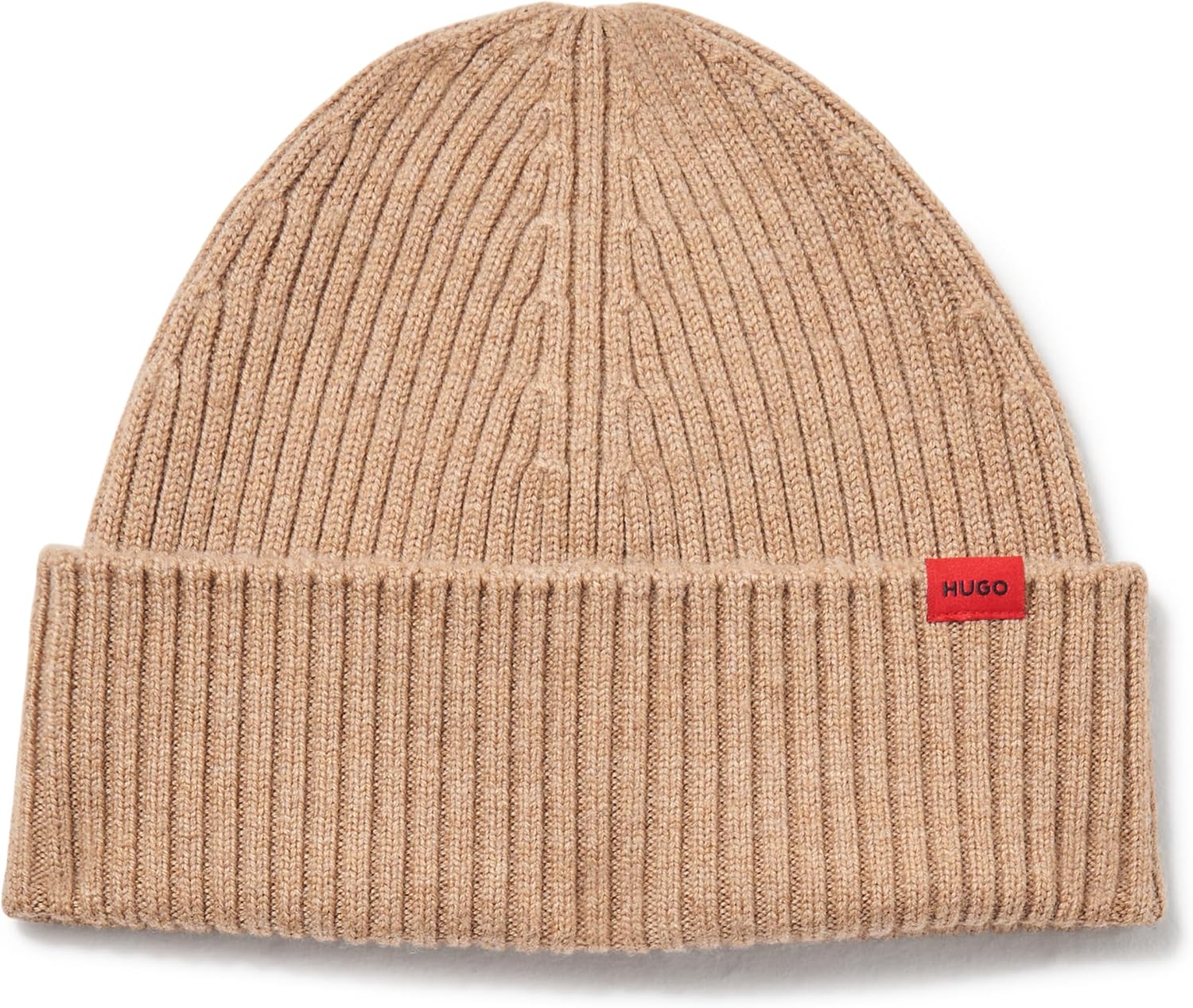 BOSS Men's Ribbed Beanie with Felt Woven Center Logo