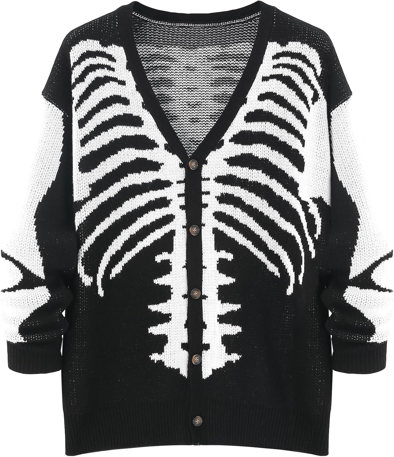 Mens Skeleton Pattern Y2K Chunky Cardigan Sweaters Long Sleeve Unisex Outwear Knitted Coats
