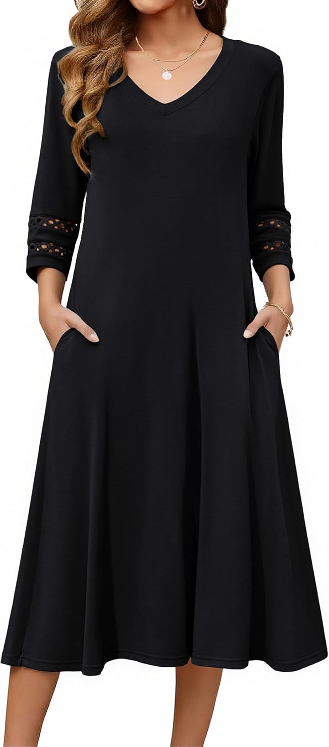 Zeagoo Women Casual Dress 3/4 Sleeve Casual Loose Midi Dress