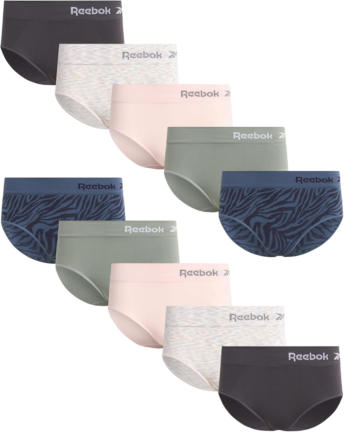 Reebok Hipster Panties for Women - 10 Pack Stretch Performance Seamless Underwear with Relaxed Tagless Waist (Sizes: S-XL)