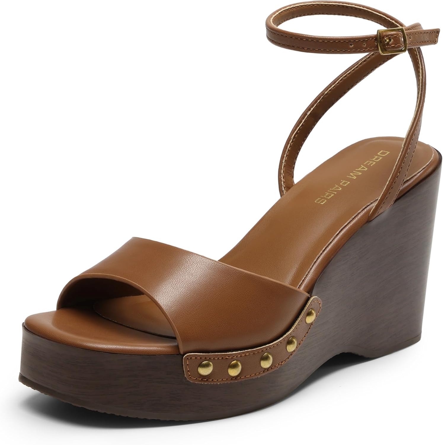 DREAM PAIRS Wedge Sandals for Women,Dressy Platform Square-Toe Ankle Buckle Studded Fashion Sandals for Summer
