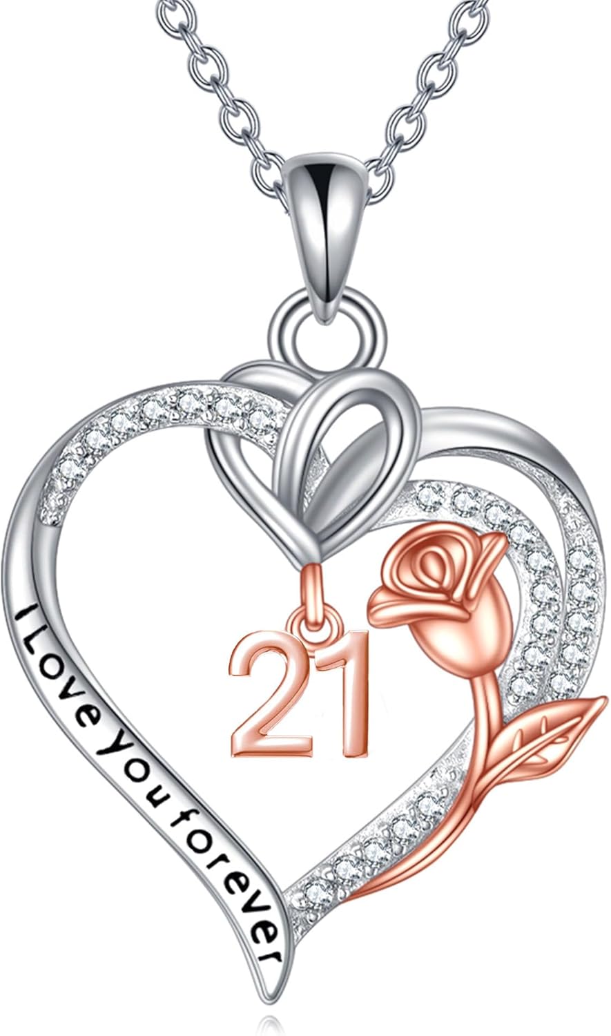 Birthday Necklace Sterling Silver 16th 18th 21th 80th Birthday Pendant Necklace Heart Rose Flower Birthday Jewelry for Women Mothers Day Christmas Gifts