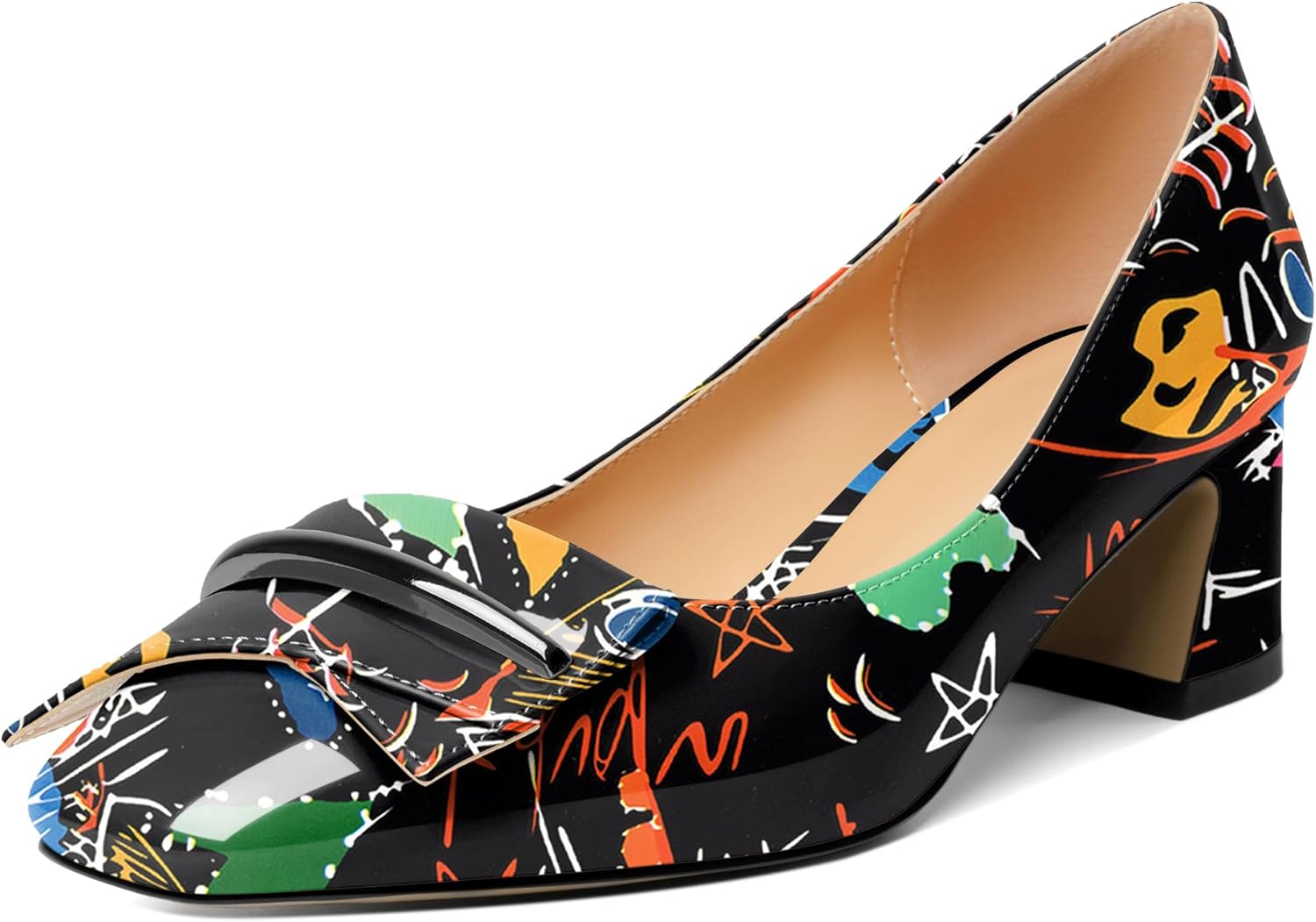 ANN CREEK Women's Pumps 'Angela' Shoes for Women Dressy Low Heel Rush Hour Office Shoes Two Tone Womens Pumps Square Toe 2.4 Inch Chunky Heel Slip On