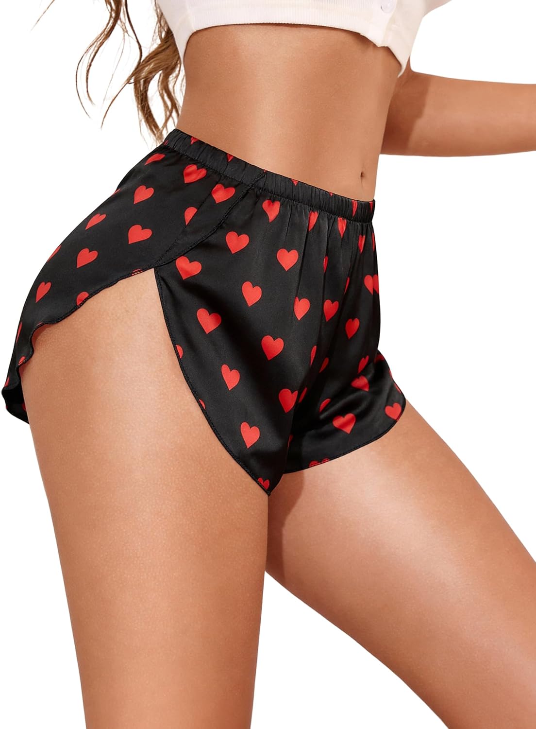 Women Satin Pajama Shorts Cute Micro Shorts Side Slit Silk Lounge Bottoms Nightwear
