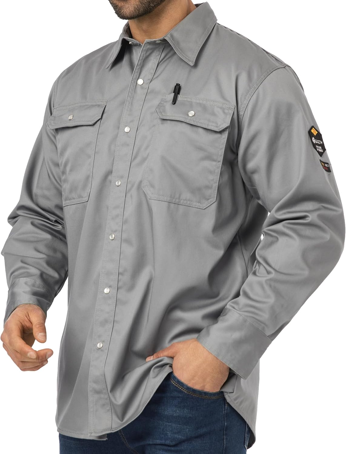 JKSafety 7oz FR Shirts for Men Women ARC 2 Fire Resistant Welding Shirts FRC Long Sleeve Safety Workwear