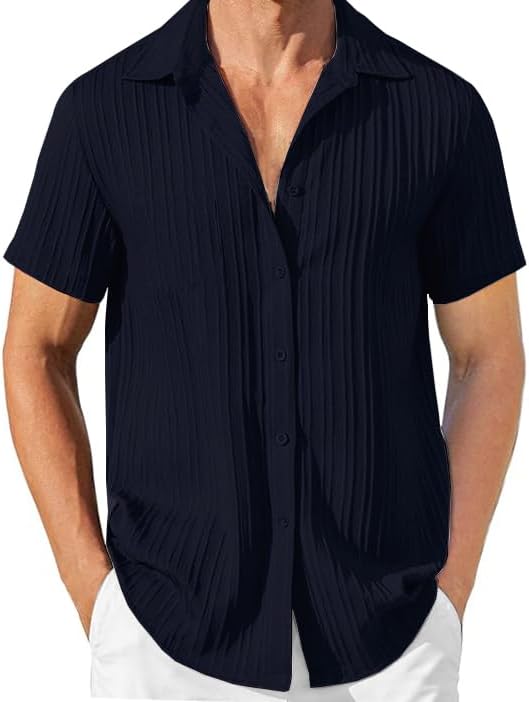 Men's Casual Short Sleeve Shirt with Texture Button-Down for Summer Home and Travel