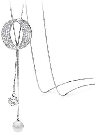 Vintage Statement Rhinestone Circle Pearl Drop Lariat Long Sweater Necklace For Women Alloy Faux Pearl Y Shape Adjustable Gold Silver Two Colors