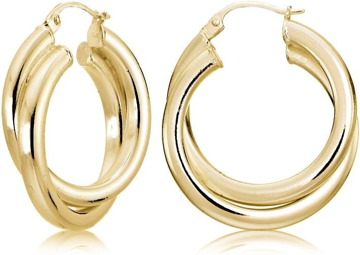Sterling Silver Square-Tube 20mm Crossover Double Round Hoop Earrings