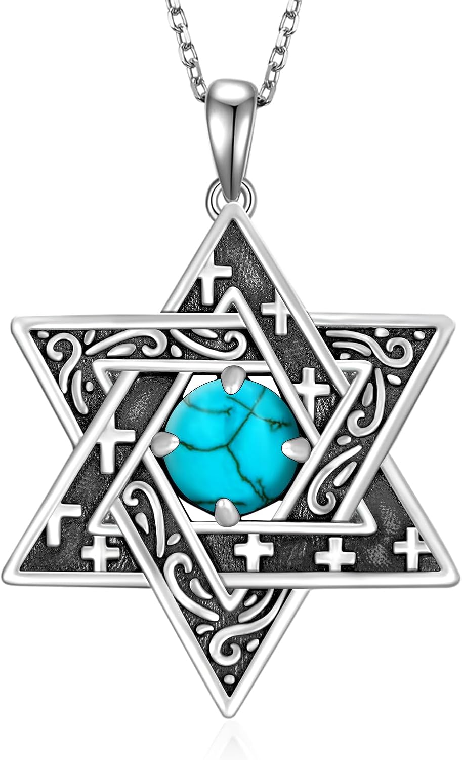 Star of David Necklace 925 Sterling Silver Rose Flower/Turquoise Jewish Star Necklace Jewish Gifts Jewelry for Women Men