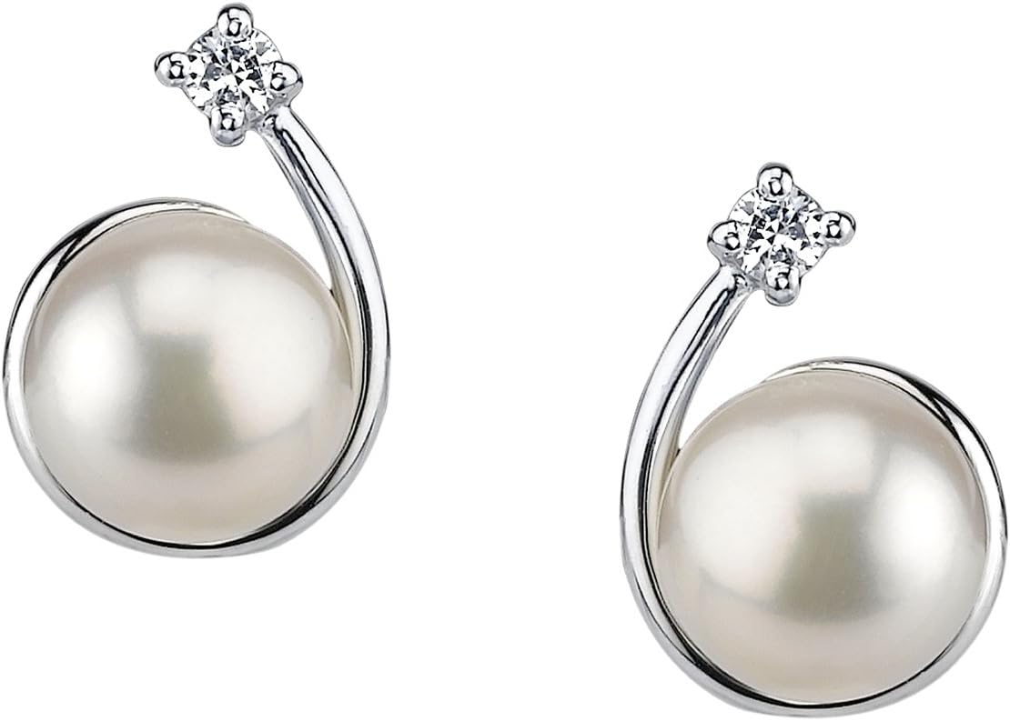 THE PEARL SOURCE 8-9mm Genuine White Freshwater Cultured Pearl Shooting Star Earrings for Women