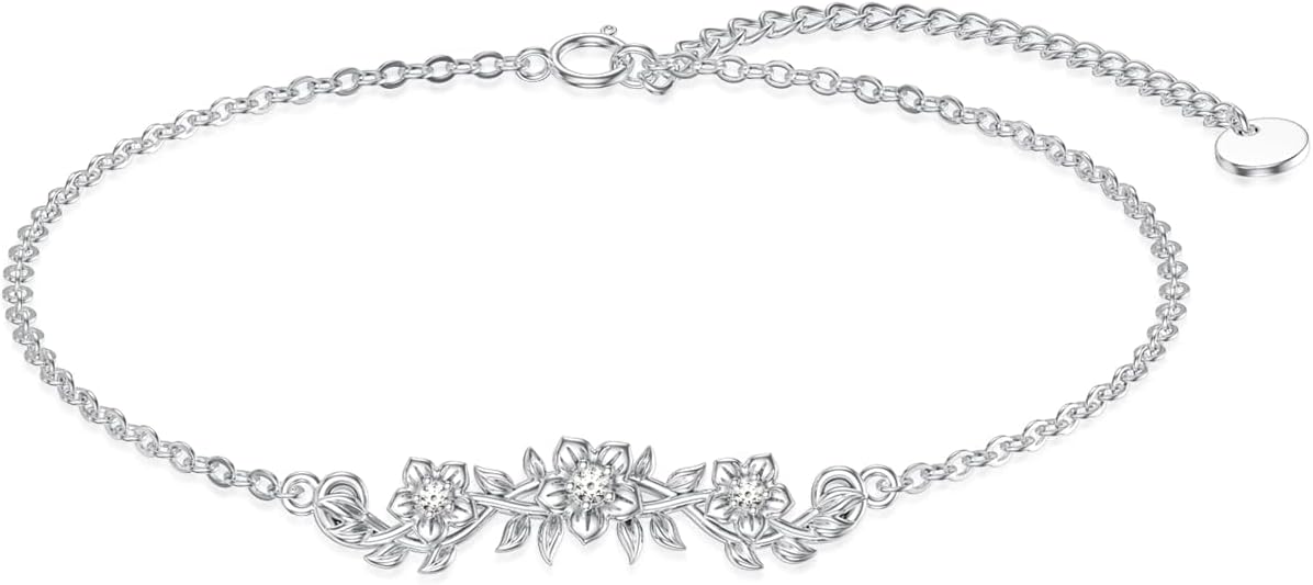 Diamond Flower Bracelet for Women 925 Sterling Silver Lab Grown Diamonds Jewelry Gifts for Mom Wife Girlfriend Daughter Sister Friend