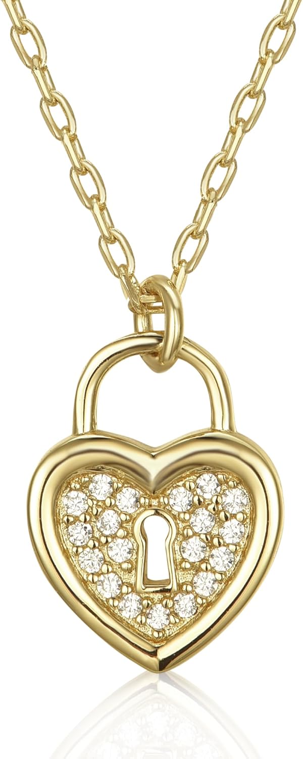 MING&KELLY JEWELRY,14K Gold Heart Pendant Necklace,Cubic Zirconia Heart Necklace,Cute Dainty Love Pendant Necklaces for Women