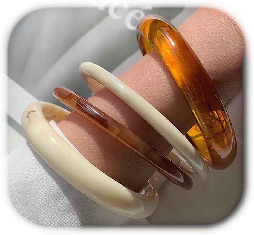 4 Pcs Chunky Acrylic Bangles Bracelets for Women Geometric Circle Thickness Wristbands Cuff Bracelet Jewelry Resin Acetate Mottled Statement Bangles Bracelets Set for Women