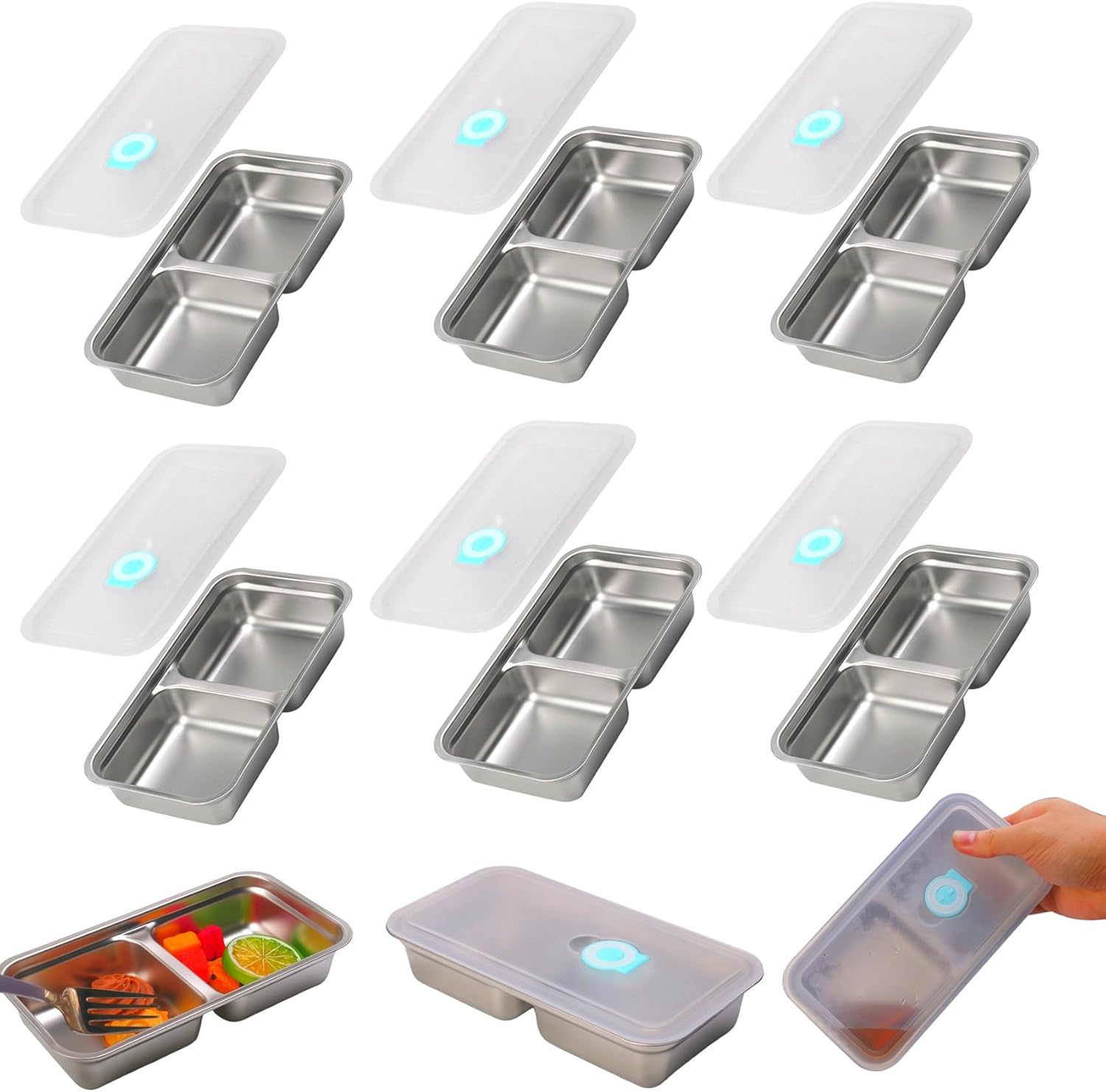 - 2 Compartments for Meal Separation: Each 304 stainless snack container features 2 separate compartments, allowing you to keep different foods separate, preventing flavor mixing, and helping with portion control. The bento box stainless steel is ideal for balanced meals and calorie-conscious eating.