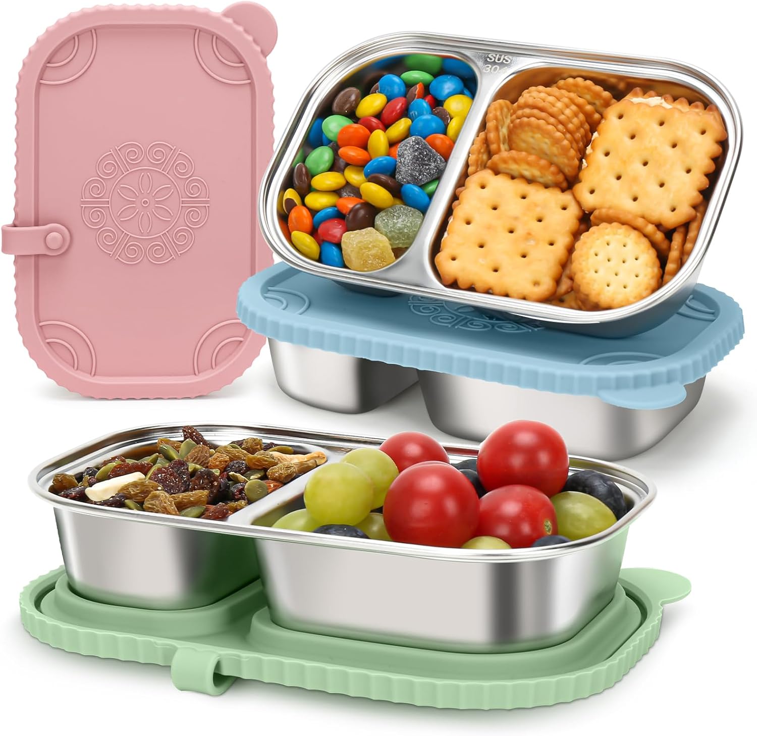 - Versatile Use for All Occasions: These stainless steel snack containers are lightweight yet sturdy. They’re ideal for snacks, office lunches, picnics, and travel. The durable design works equally well for snack boxes or adult meal prep. They stack neatly to save space in your bag or fridge, ready for any eating occasion