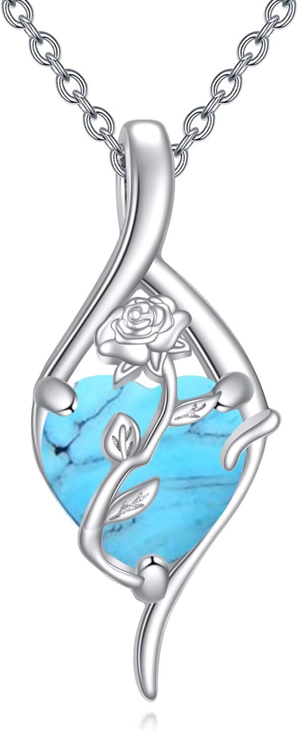 Mother's Day Gifts for Mom Opal Necklace 925 Sterling Silver Rose Flower Heart Pendant Necklace Fine Jewelry Birthday Gifts for Women