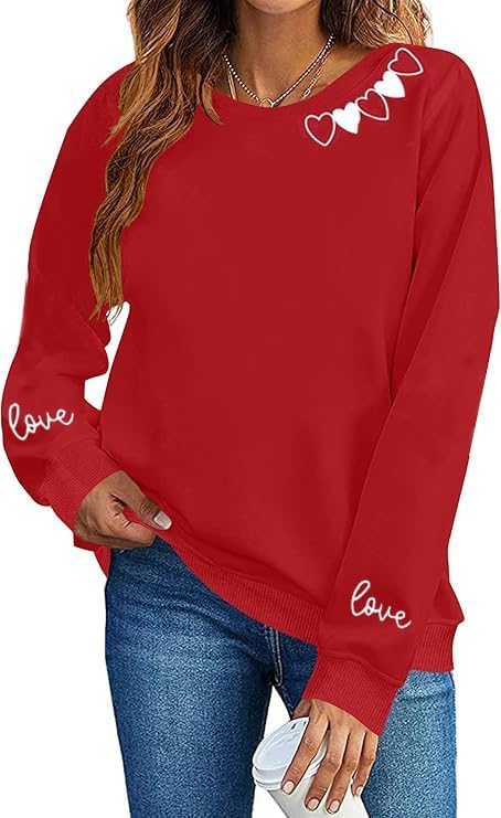 Valentine's Day Sweatshirt Women's Funny Love Heart Graphic Shirt Casual Long Sleeve Pullover Top
