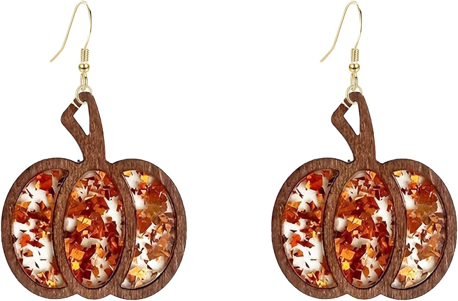 Autumn Hollow Out Pumpkin Glitter Sequin Earrings Sparkly Fall Dangle Drop Earrings for Women Party Festival Thanksgiving Halloween Jewelry