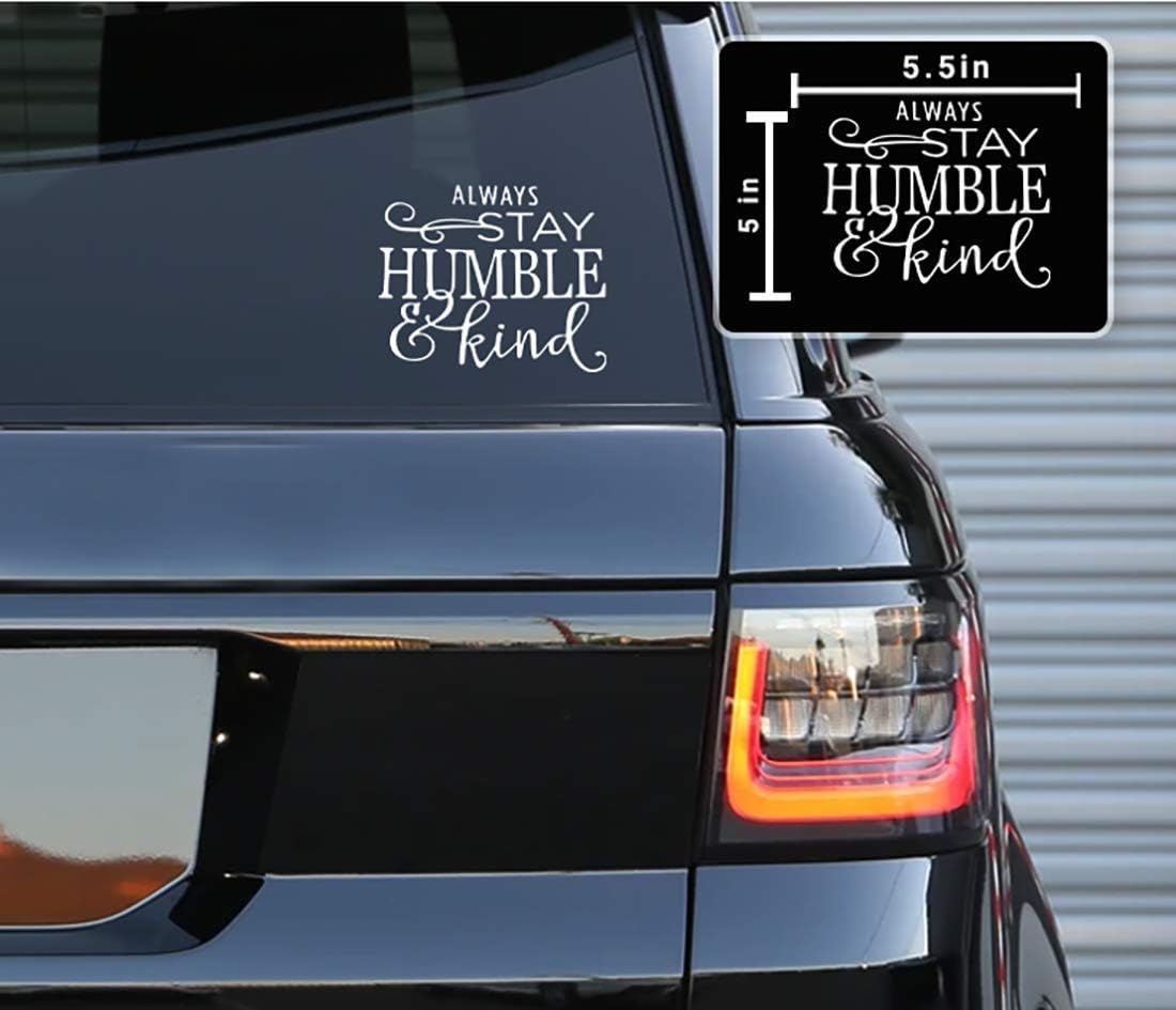 Always Stay Humble and Kind Vinyl Decals Stickers for Cars, Van, Trucks, Laptop (White, 5 x 5.5)