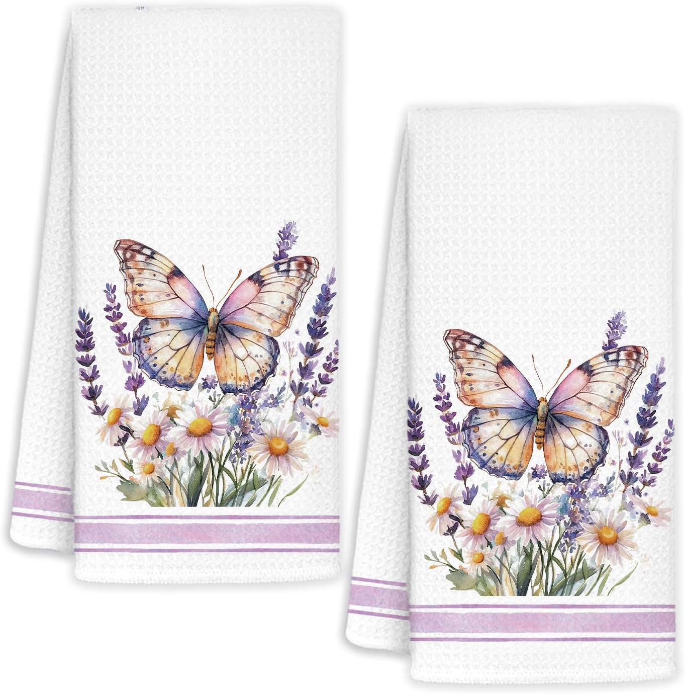 Purple Butterfly Floral Kitchen Towels, Farmhouse Botanical Decorative Hand Towels for Bathroom, Rustic Cottagecore Butterfly Flower Dish Towel, 16x24 Inches Set of 2