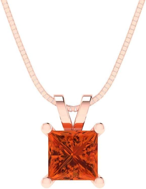 Clara Pucci 0.5 cttw Red Simulated Diamond Rose Gold-Plated Silver Necklace and Pendant for Women (18" Box Chain,Princess Cut,4.5mm)