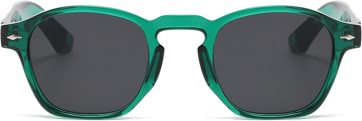 Unisex Vintage Retro Round Style Tinted Sunglasses for Men Women Fashion Sun Glasses UV400 Protection (Green/Grey Lens)