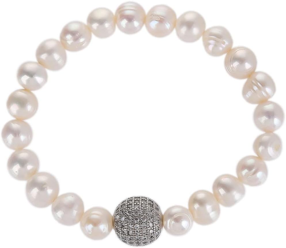 ZVVBOO Freshwater Cultured Pearl Stretch Bracelet For Women Trendy CZ Charm Bracelets Fine Party Jewelry Gifts
