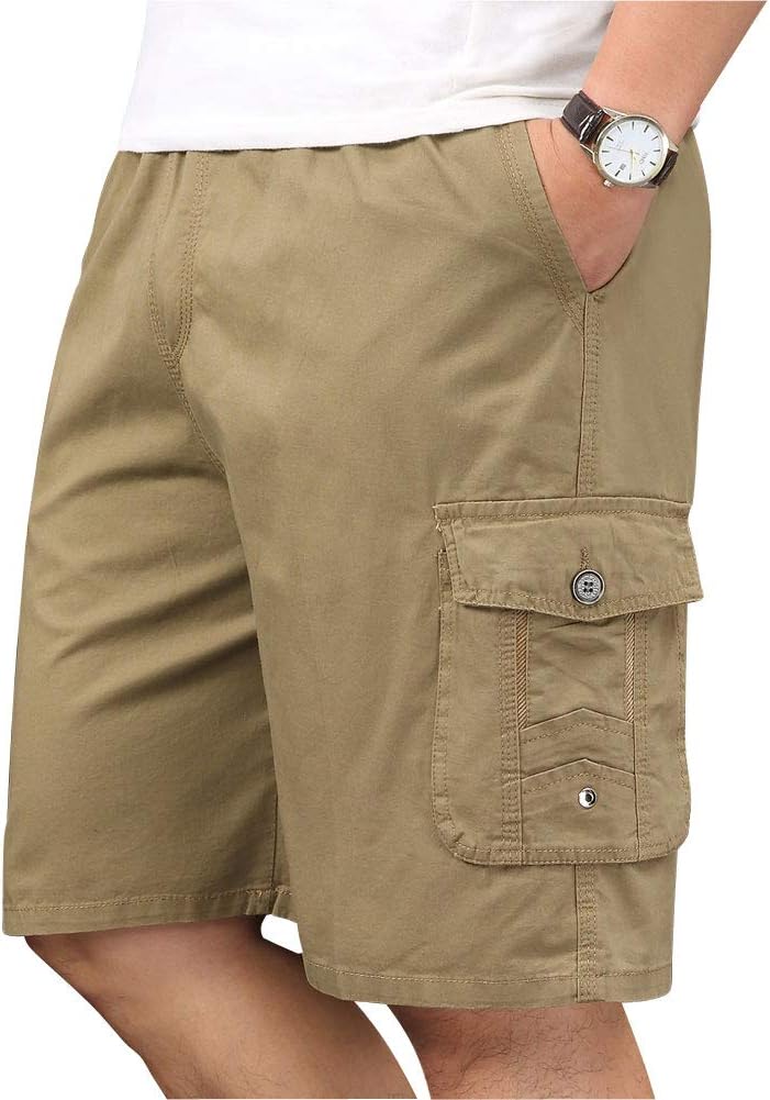 Mens Lightweight Cotton Loose Full Elastic Waist Twill Cargo Short with Drawstring