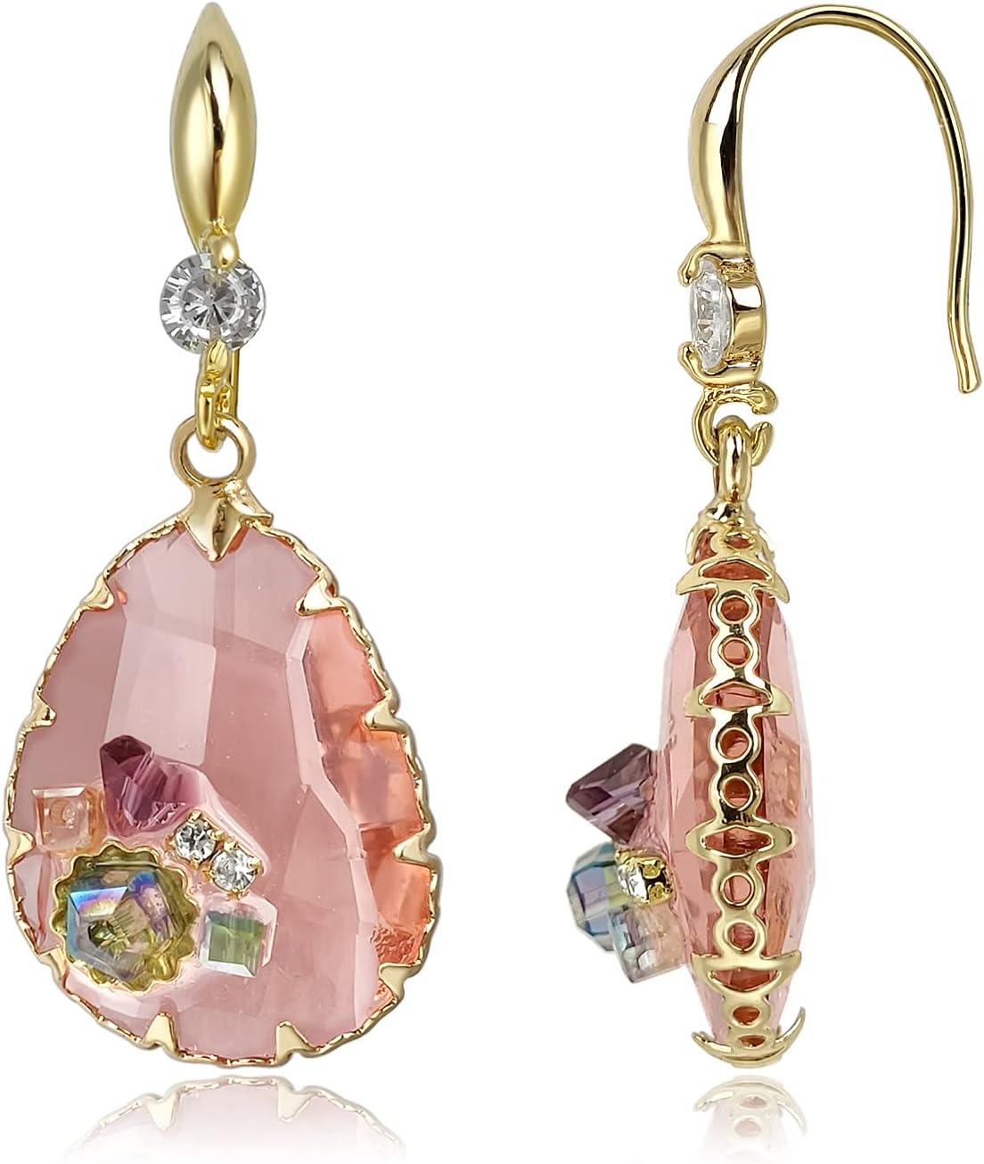 Crystal Teardrop Earrings 14K Gold Plated Dangle Earrings for Women
