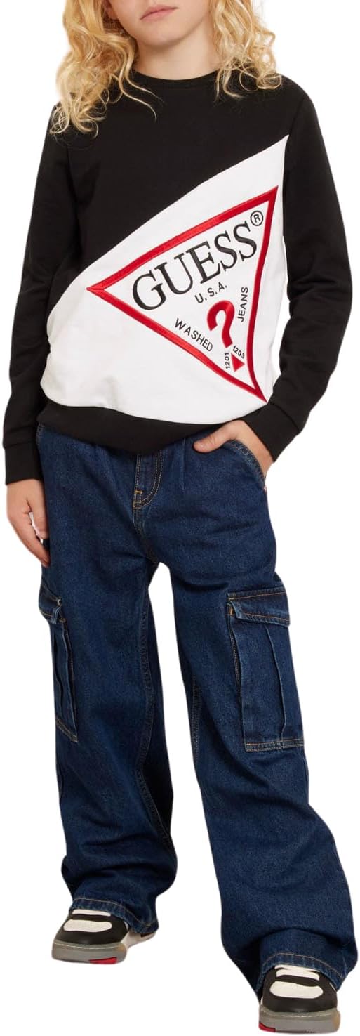 GUESS boys Eco Fleece Contrast Crew Neck Sweatshirt